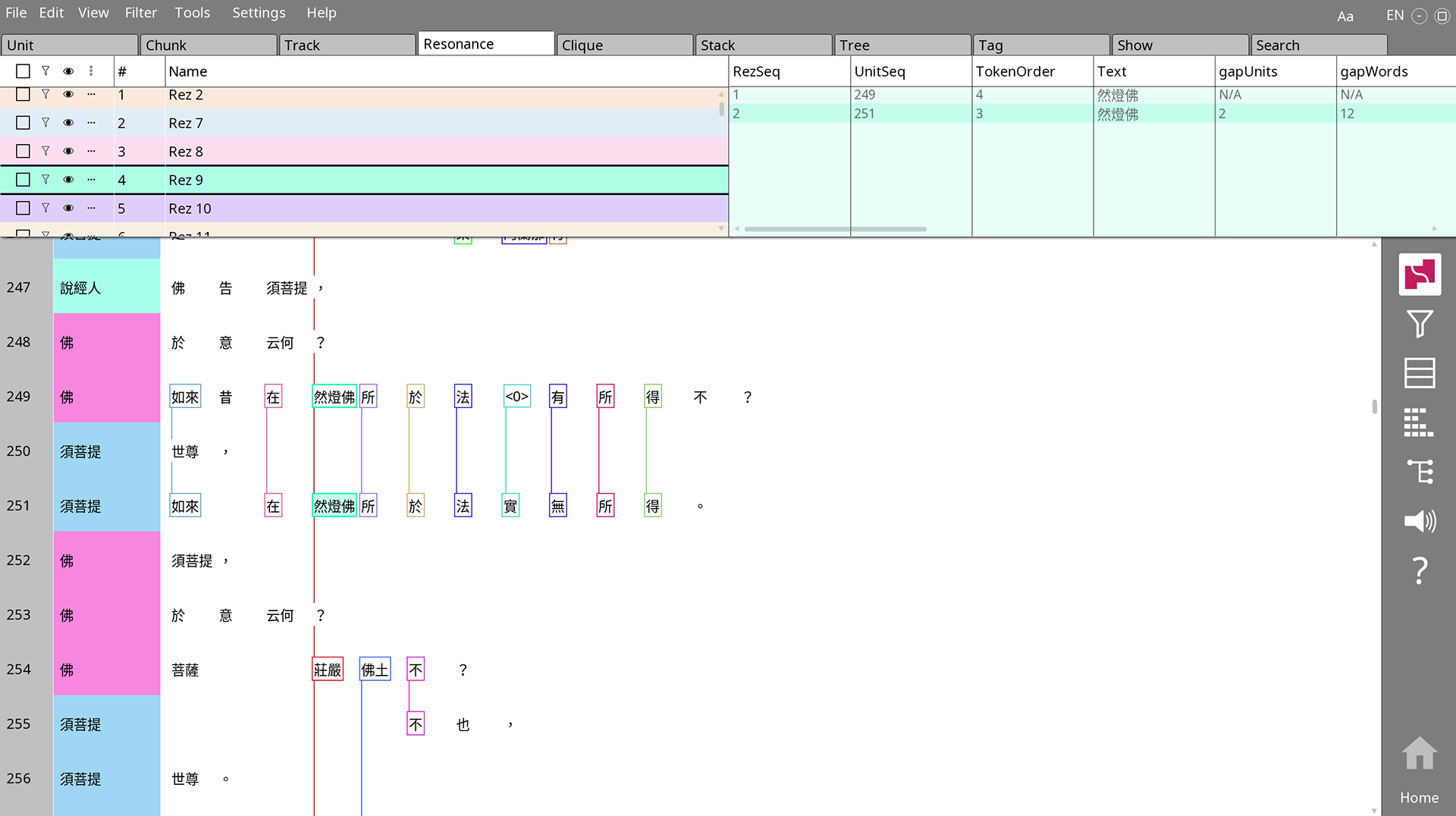 The company's flagship product is Rezonator, an open-source large scale application for importing, annotating, and visualizing linguistic phenomena. Users can link units of dialogue to create chains, group words up to form chunks, and tag data at any level. Rezonator is available to download on Windows, MacOS, and Linux, and can be demoed in browser as well. The app has also been released via Steam.